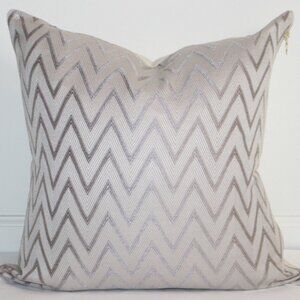 This zig zag pillow cover is a statement piece in any room whether your decor is modern, contemporary, classic or traditional. The back of the pillow is done in a solid linen fabric. Each pillow cover is sewn professionally, and finished with serged knife edges. This pillow has a signature exposed brass zipper. Pillow cover only.