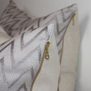 Decorative Zig Zag Pillow Cover, 2pc Grey Printed Cover w/ Brass Metal Zipper