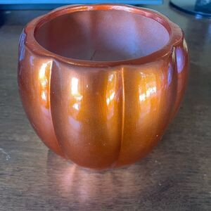 This cute metallic pumpkin can be used as a vase, a candy basket for Halloween night or simply a decorative piece to add to your collection.