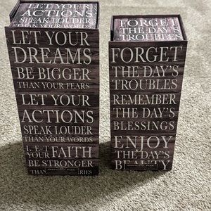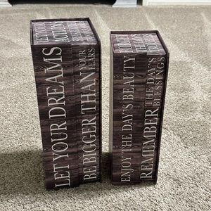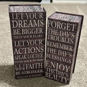 Decorative boxes. Can be used together or apart. One fits inside the other. Nothing is wrong with them, I just have no use for them anymore.