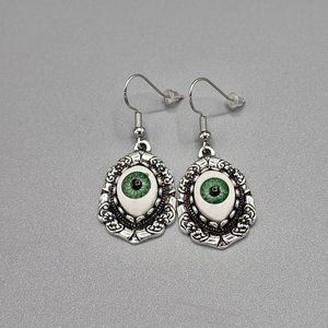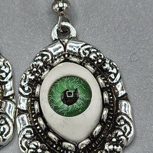 Decorative framed green evil Eye Dangle Earrings with silver tone Outer Decor