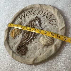 Get ready for summer with a Decorative Welcome wall sign featuring a seahorse and shells.