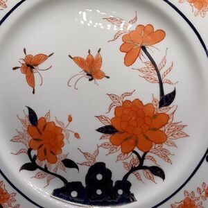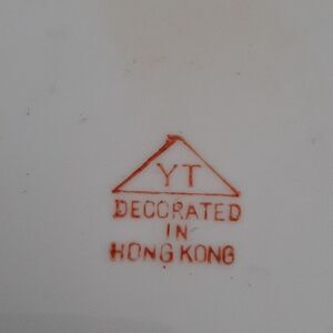 Beautiful oriental decorative plates and stand from YT in Hong Kong. Color is a salmon color, white, and black. This is in great previously owned condition.