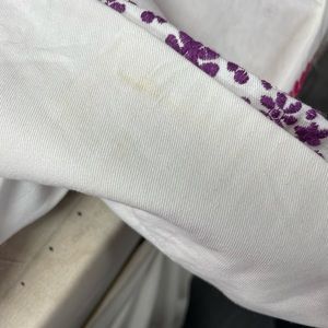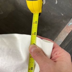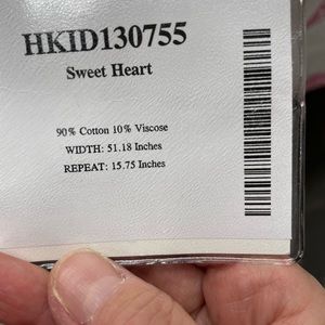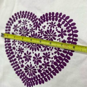 This is a decorator fabric, high and embroidered hearts one with see the tape measure for finished width and length there is some discoloration on the backside see photos