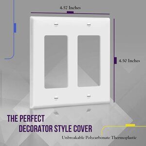 Easy replacement of any wall plate of the same configuration. Dimensions: 4. 50" height x 4. 57" length