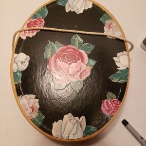 Vintage Oval Black Box has a rope handle. I decoupaged wallpaper roses all over it. It would make a super Christmas or Easter or Valentine holiday gift box for that special someone who likes vintage or botanical! Or use it on your dresser, table, shelf, desk decor or in the dorm for jewelry or other special items.