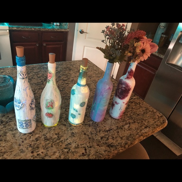 Decoupaged bottles.