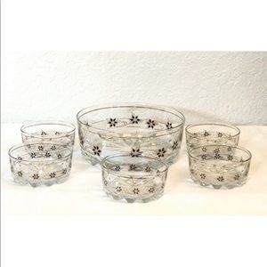 Decover Italy 6pc Salad Bowl Set Mid Century Modern Black Floral w/Gold Trim.