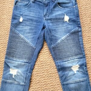 Decoy Low Rise Tapered Moto Jeans Size 34Wx34 Distressed Blue