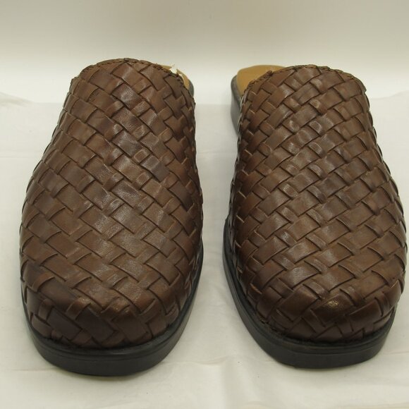 Decoys by Auditions brown braided leather mule, closed toe, in 8.5N. Appears brand new.