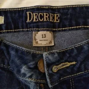 Decree jeans size 13. Lots of holes, some are big.