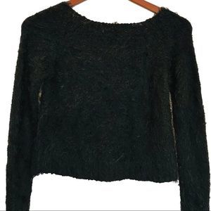 🖤 Decree Black Fuzzy Crop Sweater – Size XS