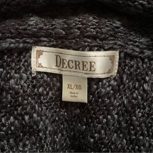 Decree Womens XL Black Gray Knit Open Front Waterfall Cardigan Sweater in good used condition. No stains, tears or rips.