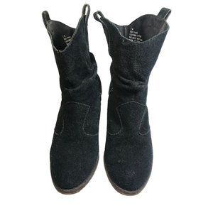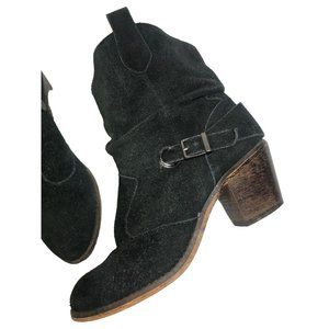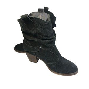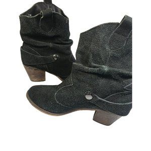 Decree Black Leather Pull On Women's Slouchy Heel Ankle Booties Size 7 M Buckle