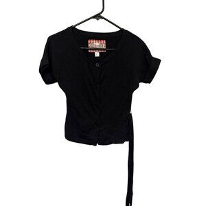 Decree Black S/S Sweater with Tie Button Front Womans S