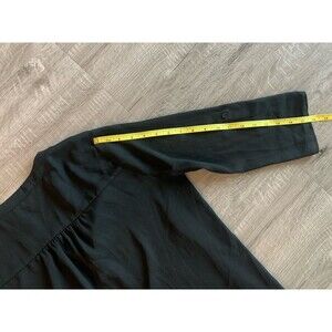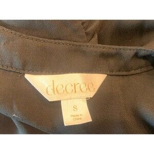 Decree Blouse Women Sz S Black Blouse Top Career Roll Tab Semi Sheer V Neck Work