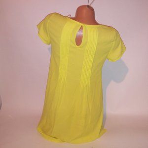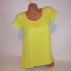 Decree Blouse Womens XS Short Sleeve Chiffon Scoop Neck Yellow Hi Low Pit to Pi