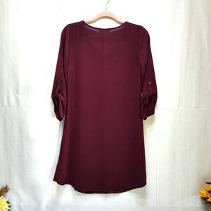 Decree Burgundy Roll Tab Sleeve Tunic Dress w/ Slip Small Casual Or Semi-Formal