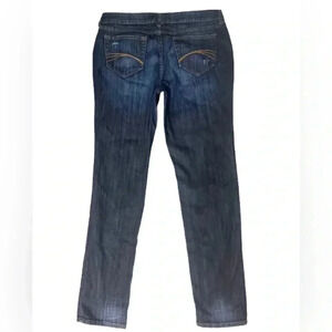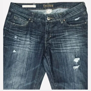 Decree Denim women’s jeans super skinny dark blue distressed fade some stretch excellent condition measurement in pics