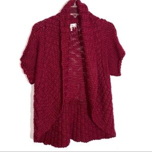 Sweater cardigan with drape front opening. Short sleeves. Gently used with no flaws-see photos.
