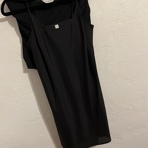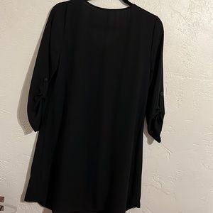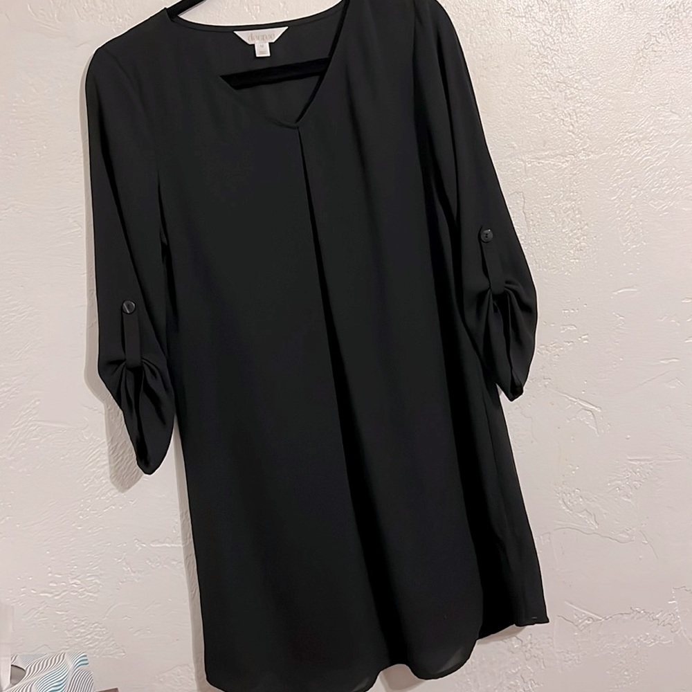 Decree Dress, size M. Black semi sheer polyester over silky polyester slip dress. Roll up 3/4 sleeves, V neck, excellent condition. Like new!