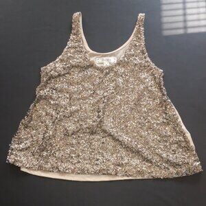 Sleeveless beige tank top embellished with sparkly gold sequins