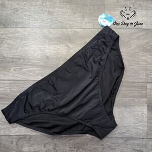 A sleek black hipster bikini, so perfect to wear, made with soft nylon and spandex with flair! This low-rise bottom from Decree is brand new with its tags, ready to make you feel fabulous whether swimming or catching rays!