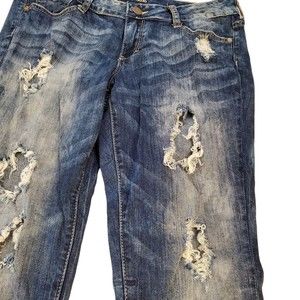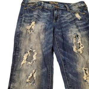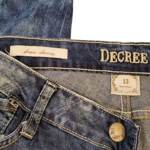 Decree Junior’s Distressed Holes Jeans Super Skinny Stone Washed Stretchy SZ 13