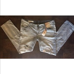 Decree Juniors Plus Size Distressed Supper Skinny Grey Denim Low Rise Jeans Brand New With Tags Size: "17" waist is 20 inches and inseam is 32 inches