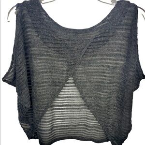 Decree Juniors Semi-Sheer Top Shirt M Gray Open Shoulders Bare Midriff.