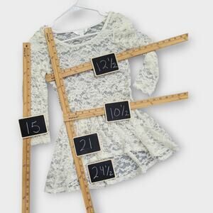 Decree Lace Top Womens Junior XS Cream Peplum Pullover Feminine Soft Girl