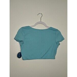 Decree Light Blue Ribbed Swimtop Crop Top Midkini Juniors Size Large