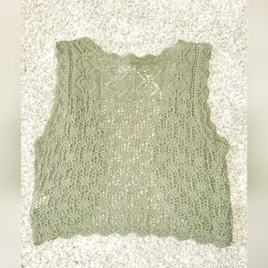 This stylish Decree tank top features a vibrant green hue and a sleeveless, cropped design. The intricate knit pattern adds a touch of sophistication, making it a versatile piece for any wardrobe.