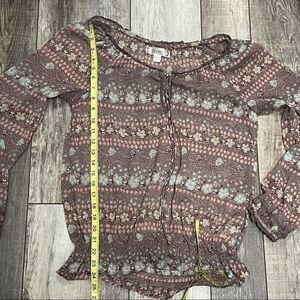 Decree Off The Shoulder Tie Front Elastic Waist Mauve White Rose Blouse Medium