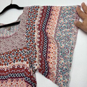 Add a touch of boho chic to your wardrobe with this Decree women’s blouse in size Large. Featuring a flattering square neckline, flutter short sleeves, and a relaxed flowy fit, this lightweight top is designed in a beautiful multicolor floral and geometric patchwork print. Perfect for casual outings, vacations, or festival looks.