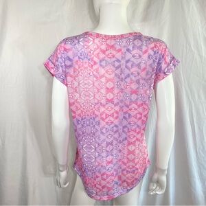 Decree Pink & Purple Southwest Design Rolled Cuff V-Neck Tee