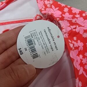 Decree Pink Red Floral Tankini Halter Top Swimsuit Bikini Size 3x