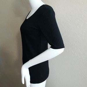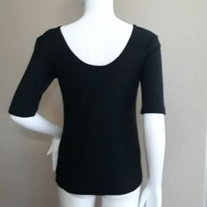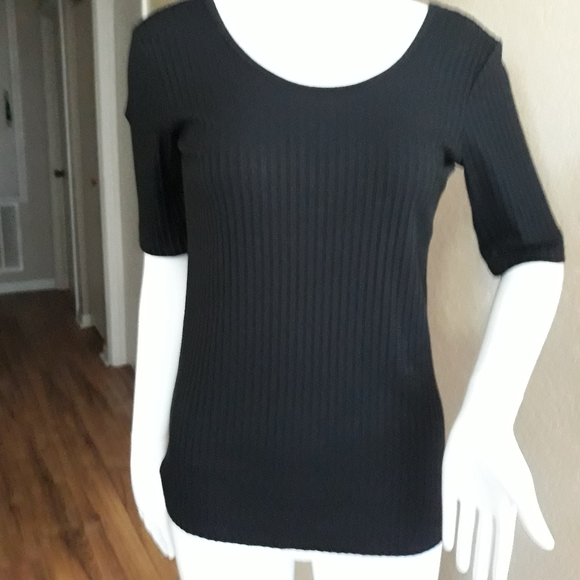 Black Ribbed stretch Top. Casual or dress very versatile. Bow neck front and back. Measures: 16½ pit to pit and 24" shoulder seam to bottom hem. #Decree #womansclothing BY#1