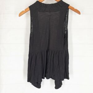 Decree S Open Front Top Solid Black Ruched Peplum Sleeveless Festivals!