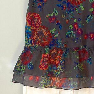 Decree SZ L Gray floral print corset style sleeveless top ruffle hemline Boho English Countryside Dark Romance Whimsigoth