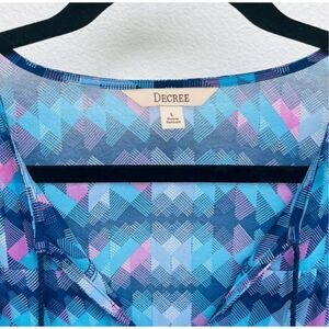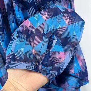 Decree Sheer Abstract Long Sleeve Blouse Size L Women’s Blue / Purple Geometric