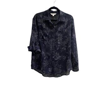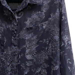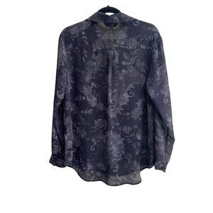 Decree Sheet Floral Whimsigoth Button Up Shirt Sz L Black Roll Tab Paisley Witchy
