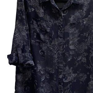 Decree Sheet Floral Whimsigoth Button Up Shirt Black Roll Tab Paisley Witchy-L