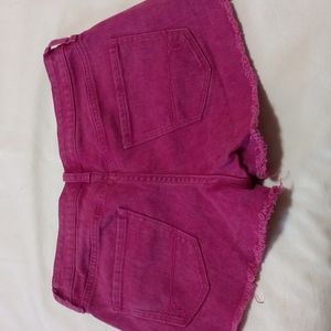 Magenta color pair of Jean shorts. (not cutoffs)frayed legs, no issues.
