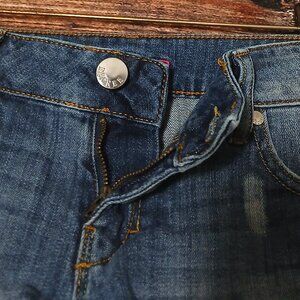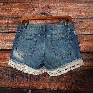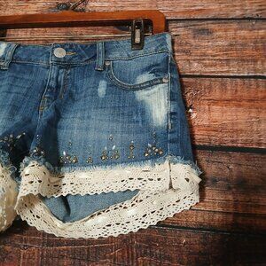 Decree Shorts Size 7 Embellished Low Rise Lace Trim Dark Wash Denim Stretch