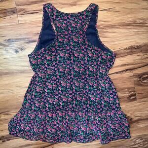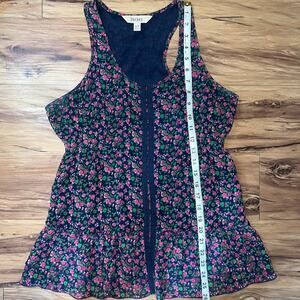 Decree Sleeveless Scoopneck Lightweight Blue Pink Floral Ruffled Lace Tank Med