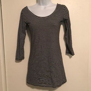 Size S. GUC. Black and white striped. Crew neck. 3/4 length sleeves. Longer tunic length. No rips, stains or defects known.