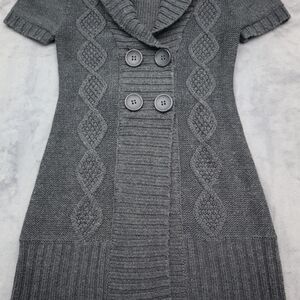 Decree Sweater Womens S Gray Cardigan Short Sleeve Button Cable Knit Acrylic
