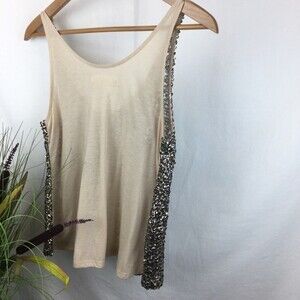 Decree Tan & Gold Sequins Embellished Tank Top M