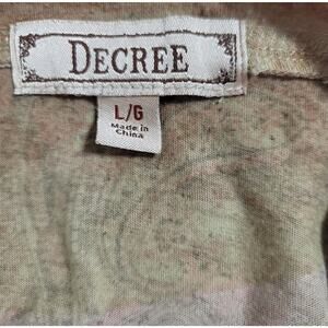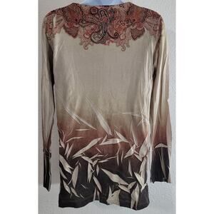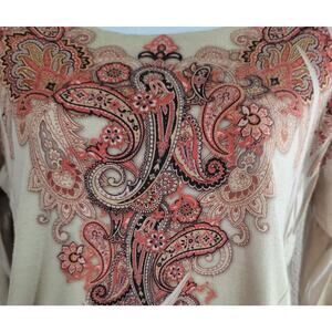 Decree Tan Orange Paisley Print Top Large Long Sleeves Round Neck Lightweight